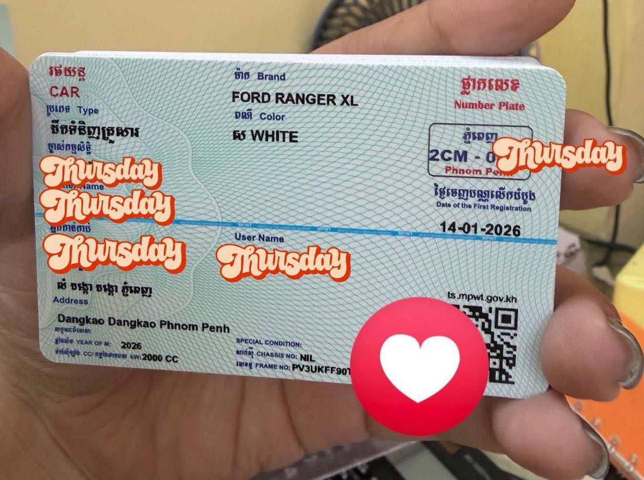 ចាប់តាំងពីខែកក្កដា ឆ្នាំ២០១៧ រហូតមកដល់បច្ចុប្បន្ននេះ ក្រសួងសាធារណការ និងដឹកជញ្ជូន បានធ្វើទំនើបកម្មទាំងប្រព័ន្ធចុះបញ្ជី ក៏ដូចជាការចេញបណ្ណសម្គាល់យានជំនិះ និងផ្លាកលេខសម្គាល់យានជំនិះ ដោយមានបំពាក់ QR Code បន្ថែមទៀត ដើម្បីផ្តល់ភាពងាយស្រួលលើការងារគ្រប់គ្រងយានជំនិះគ្រប់ប្រភេទ ជាពិសេសទប់ស្កាត់អំពើរត់គេចពន្ធ និងការក្លែងបន្លំផ្សេងៗ ក៏ដូចជាផ្តល់ភាពងាយស្រួលដល់ការផ្ទៀងផ្ទាត់របស់បងប្អូនប្រជាពលរដ្ឋ និងសមត្ថកិច្ចអនុវត្តច្បាប់។