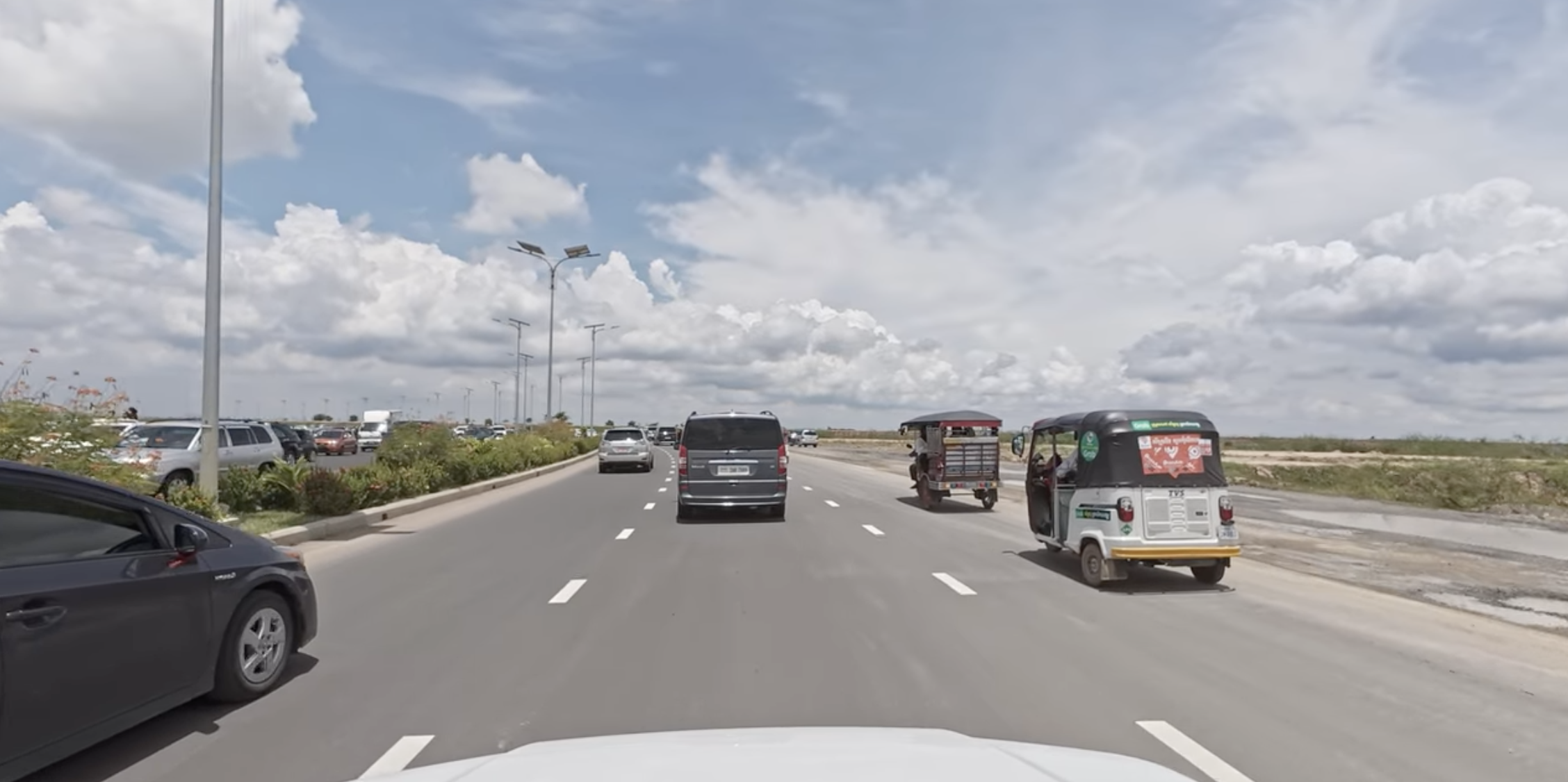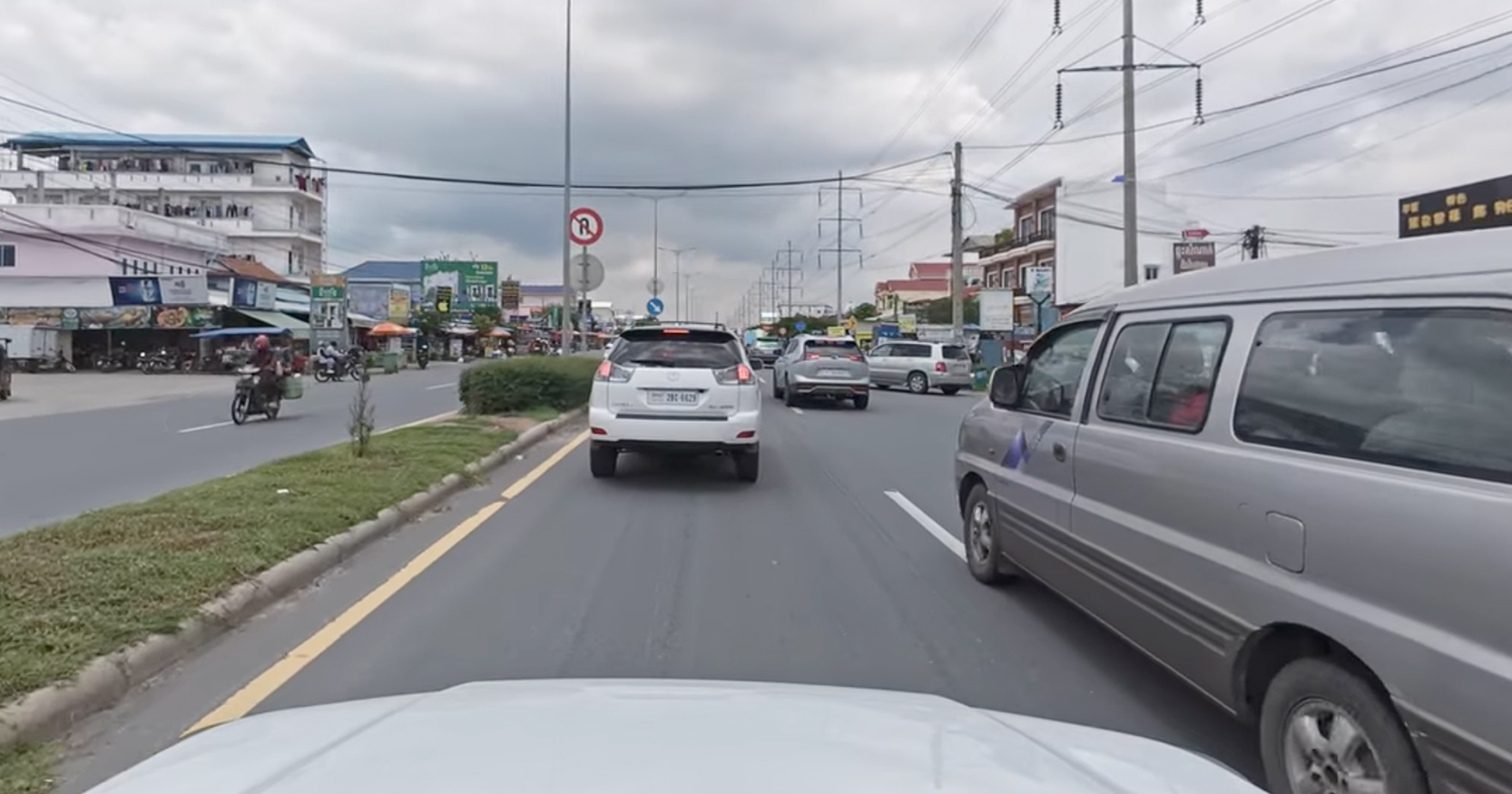 នៅលើទ្រូងផ្លូវ ដែលមានគំនូសសញ្ញាពណ៌លឿង ខឿន ឬសួនបែងចែកទិសចរាចរណ៍មាន ៤គន្លង (២ទៅ ២មក) អ្នកបើកបររថយន្ត ត្រូវបើកបរតាមគន្លងផ្លូវខាងឆ្វេង ជាប់នឹងខឿនបែងចែកទិសចរាចណ៍ ចំពោះអ្នកបើកបរយានសាមញ្ញ ត្រូវបើកបរតាមគន្លងផ្លូវខាងស្តាំ ជាប់នឹងចិញ្ចើមផ្លូវ។ អ្នកបើកបររថយន្ត អាចបើកបរតាមគន្លងផ្លូវខាងស្តាំ ជាប់នឹងចិញ្ចើមផ្លូវបាន ក្នុងករណីចរាចរណ៍មមាញឹក និងបើកបរក្នុងល្បឿនយឺត។ នេះបើយោងតាមក្រសួងសាធារណការ និងដឹកជញ្ជូន។