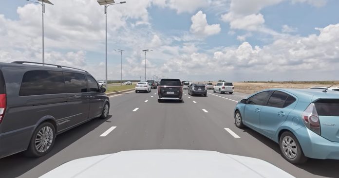 ក្នុងករណីចរាចរណ៍មមាញឹក អ្នកបើកបររថយន្ត អាចបើកបរបានតាមគន្លងផ្លូវទាំង២ រាប់ពីខឿនបែងចែកទិសចរាចរណ៍ ដោយឡែករថយន្តធុនធ្ងន់ ត្រូវប្រកាន់យកគន្លងផ្លូវកណ្តាល។ ក្នុងករណីនេះ រថយន្តនៅតាមគន្លងផ្លូវណាមួយបើកបរ លឿនជាង មិនចាត់ទុកជាការជែងឡើយ។