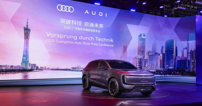 ក្រុម AUDI នៅចិនមិនបានបង្អង់យូរទេ ដោយនៅក្នុងពិព័រណ៍រថយន្តក្វាងចូវ (Guangzhou Auto Show) ពួកគេបានដាក់បង្ហាញរថយន្តគម្រូម៉ូឌែល E SUV ជាផ្លូវការ ត្រូវបានចាត់ទុកថាជាប្អូនរបស់រថយន្ដ AUDI E5 Sportback ។ បច្ចុប្បន្នម៉ាកយីហេារថយន្ដសរសេរដោយពាក្យថា AUDI គឺជាយីហោផ្តាច់មុខសម្រាប់តែប្រទេសចិនប៉ុណ្ណោះ ហើយត្រូវបានដាក់ឲ្យដំណើរការក្នុងខែ វិច្ឆិកា ឆ្នាំ ២០២៤។ រថយន្តដំបូងរបស់ខ្លួន គឺ AUDI E5 Sportback ដែលជារថយន្ត Sedan ប្រភេទ shooting brake (ឬដែលជនជាតិអាល្លឺម៉ង់ហៅថា Kombi) ត្រូវបានដាក់លក់ក្នុងខែ កញ្ញា។
