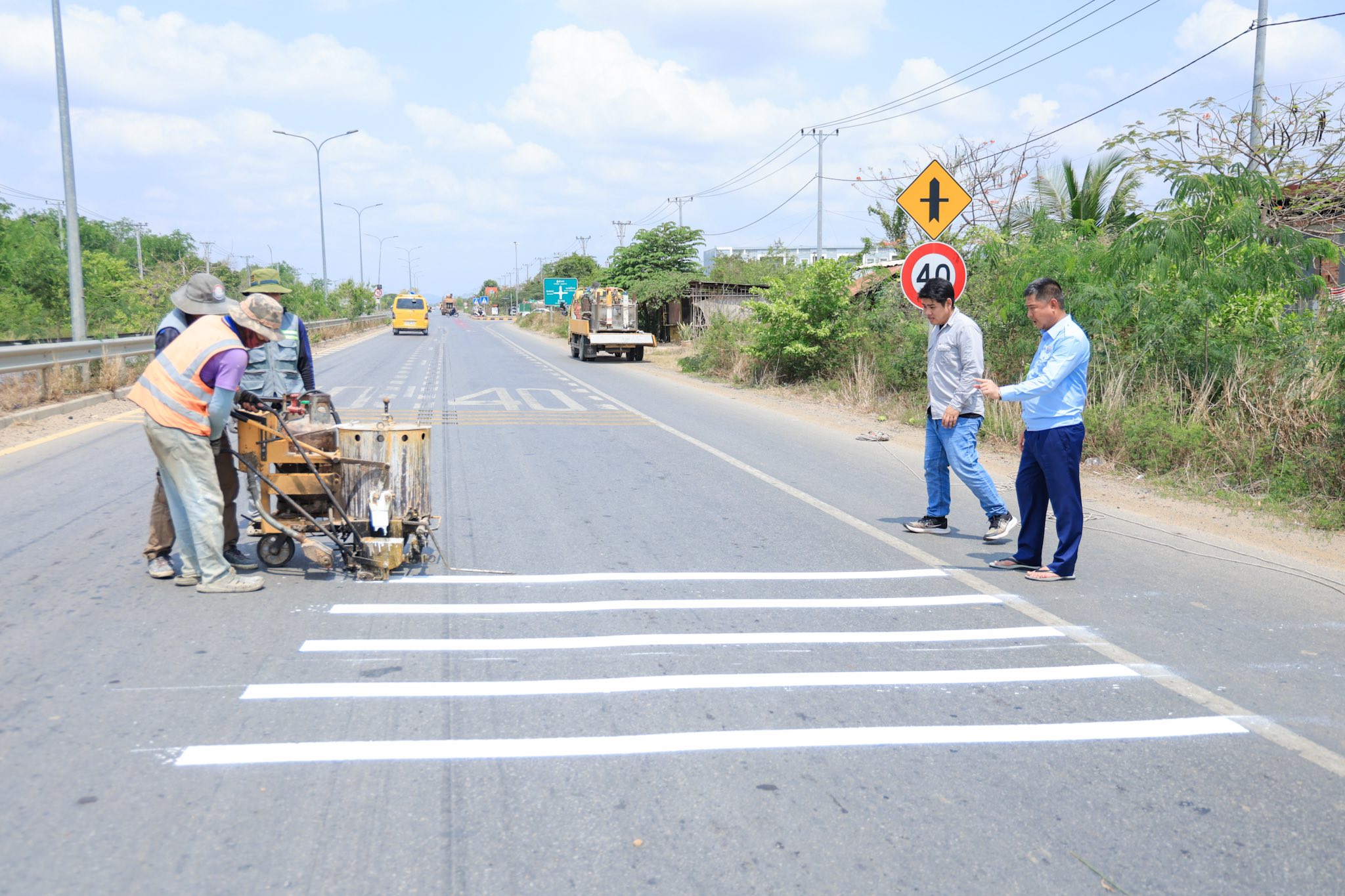 ក្រៅពីផ្លាកសញ្ញាបន្ថយល្បឿន គឺនៅមានគំនូសចរាចរណ៍មួយទៀតដែលដាស់តឿនឲ្យអ្នកបើកបរត្រូវបន្ថយល្បឿនផងដែរ