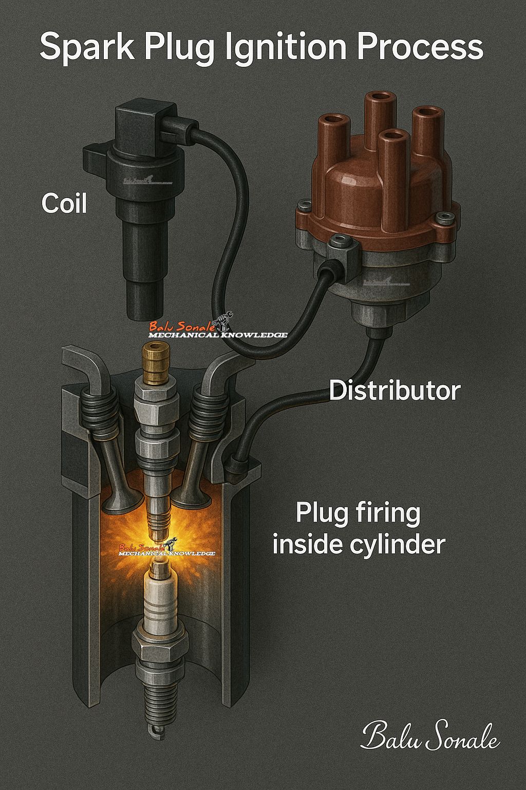 ម៉ូប៊ីន ជាអ្នកទាញយកថាមពលពីអាគុយ ១២វ៉ុល បម្លែងទៅជាថាមពលរាប់ម៉ឺនវ៉ុល (ចន្លោះពី ២ម៉ឺន ដល់ ១០ម៉ឺនវ៉ុល) ដើម្បីផ្តល់ ឲ្យប៊ូស៊ីអាចបាញ់ផ្កាភ្លើងដុតល្បាយខ្យល់ និងល្បាយឥន្ធនៈ នៅក្នុងបន្ទប់ចំហេះ នៅតាមស៊ីឡាំងនីមួយៗ។