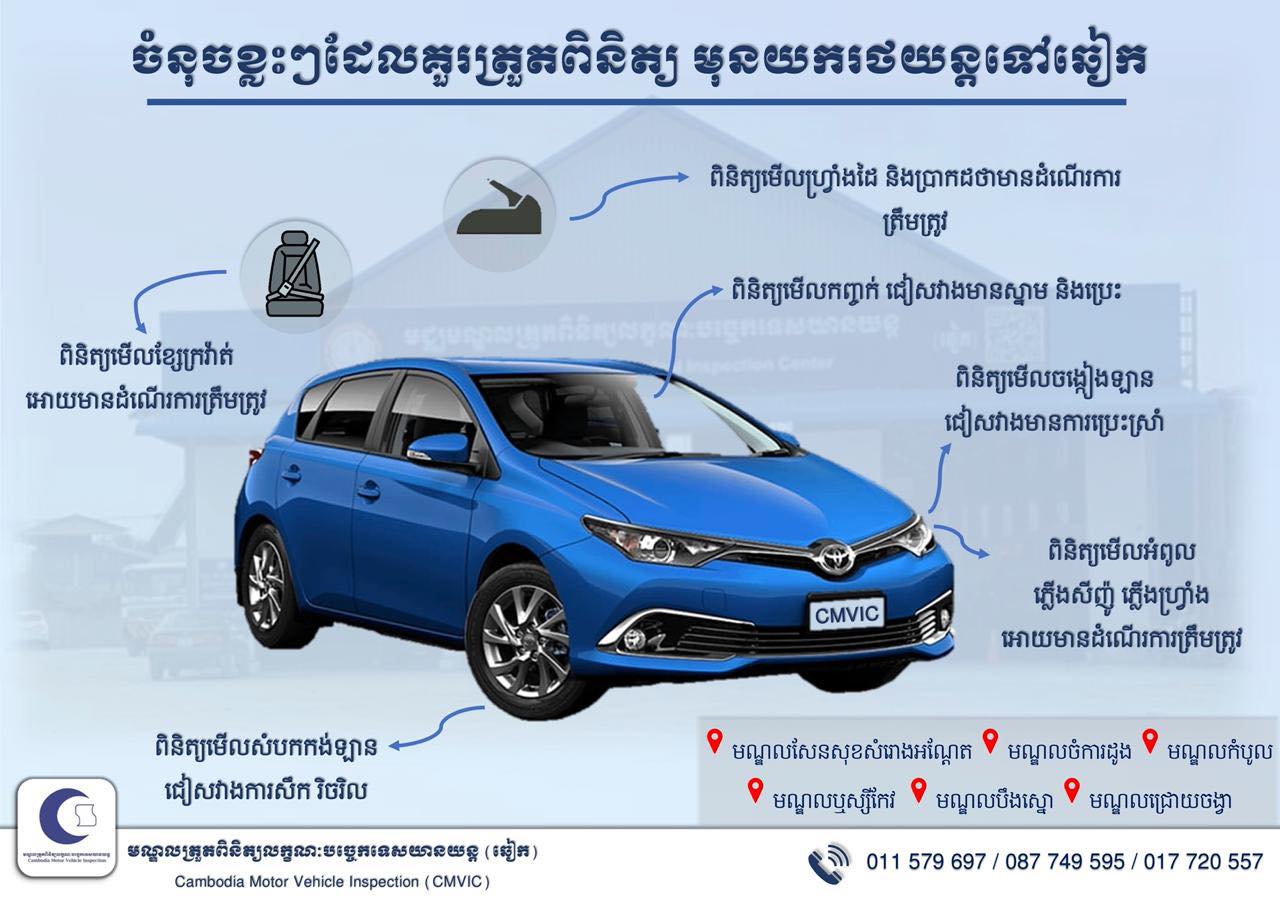 ចំពោះរថយន្តវិញ ត្រូវពិនិត្យចំនុចមួយចំនួនដូចជា
